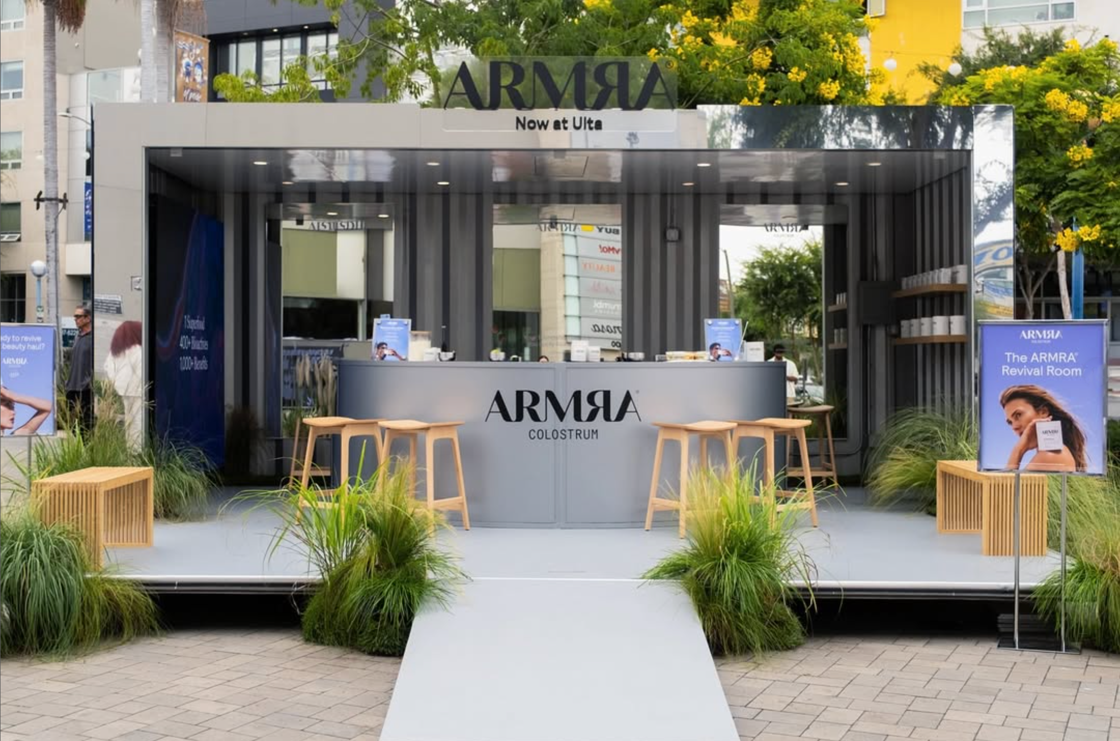 This experiential design project for ARMRA Colostrum, completed while working with Vescorp, successfully brought a rendering to life, with the final installation closely matching the original concept. The display translated seamlessly from visualization to reality, creating a polished and engaging brand moment. The design elevated the overall experience while reinforcing the client’s vision.